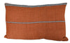 Cojín tejido color naranjo tostado con líneas delgadas grises, blancas y una celeste, tejido en telar por artesanas Aymara en el Norte de Chile.