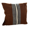 Cojín de lana color terracota con trama negra y natural, tejido en telar witral por artesanas Mapuches del Sur de Chile.